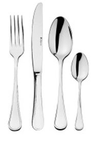 Composition 100 pièces : 12 fourchettes de table, 12 couteaux de table, 12 cuillères de table, 12 cuillères à café, 12 couteaux à dessert, 12 fourchettes à dessert, 12 cuillères à dessert, 12 fourchettes à gâteau, 1 louche, 1 cuillère de service, 1 fourchette de service, 1 pelle à tarte, 1 coffret 124 pièces.